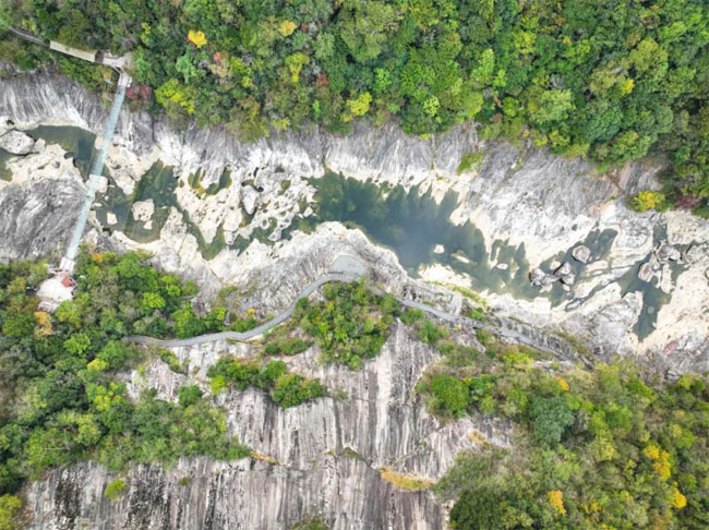 一路上沿着栈道而上,一步一风景,原本这里大大小小有很多瀑布,今年由于干旱,原本被河流淹没的河床都裸露了出来,形成了独特的风景线。