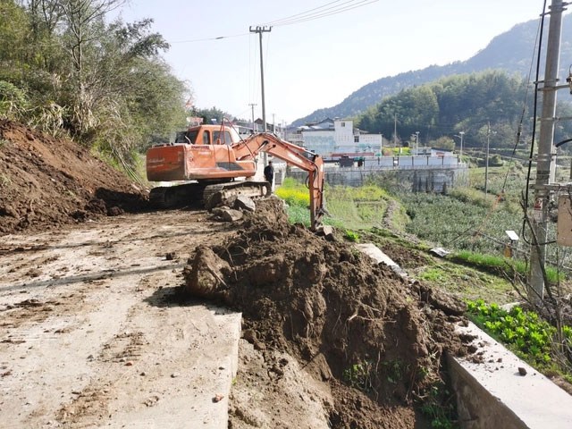 近日,在花石乡竺山村农村公路提质改造施工现场,工人们抢抓好天气,进行路面扩宽、路肩硬化作业。